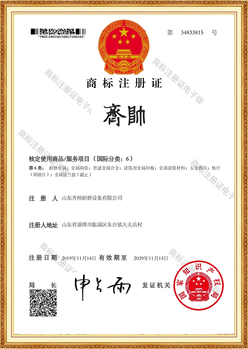 Konpainiak ISO9001 ziurtagiria du eta erabilgarritasun-ereduen patente ugari lortu ditu, bere indar teknologikoagatik aitorpena lortuz. Gure lantegiaren jabea gara eta hamarkada bat baino gehiago daramatza higadura-erresistenteak diren produktuen industrian.